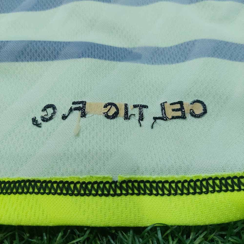 Condition detail : Bright colours, smooth material feel. Official Celtic number and patch player size. Bobbles. Some stain but washable. Crack size number.