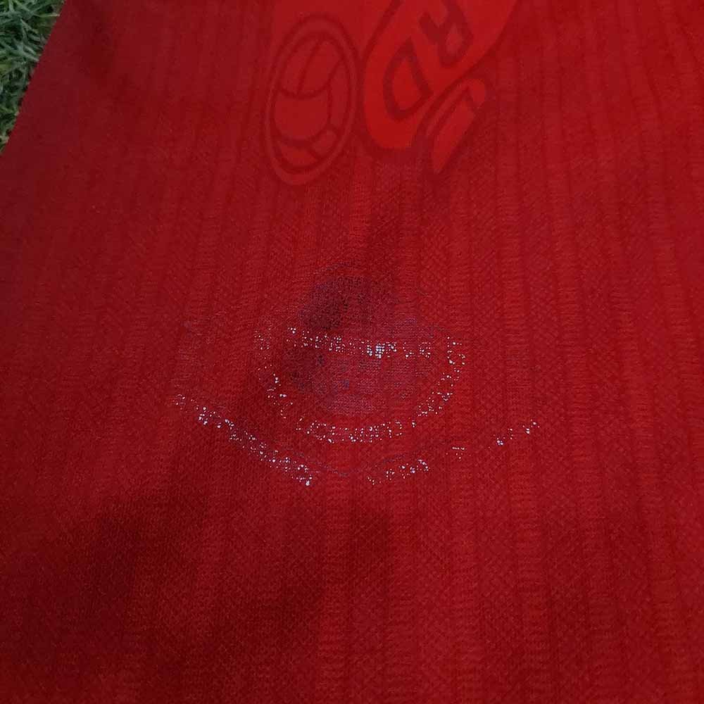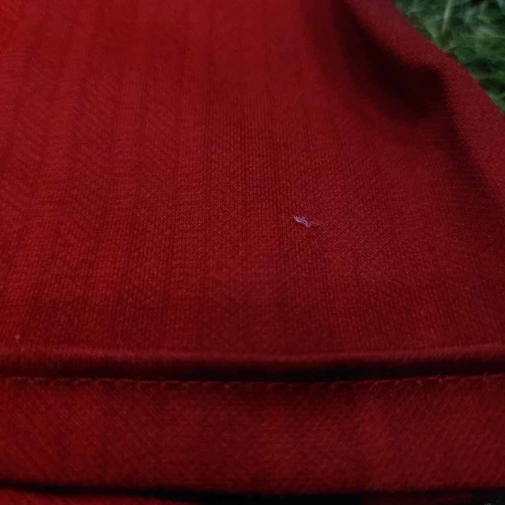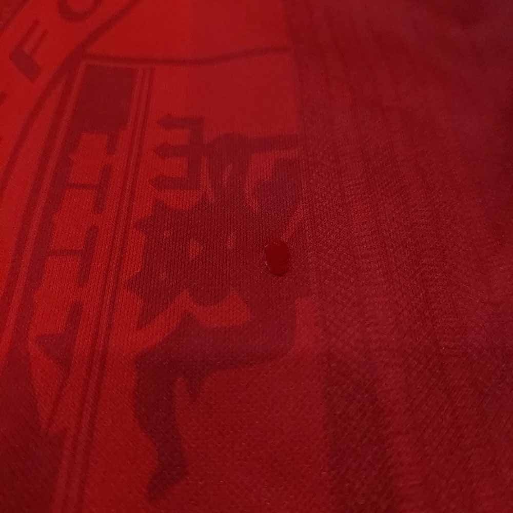 Condition detail : Bright colours, smooth material feel. Remake Manchester United nameset and number player size. There is a hole but it has been sewn up. Some bobbles and pulls. Crack authentic logo. Missing button