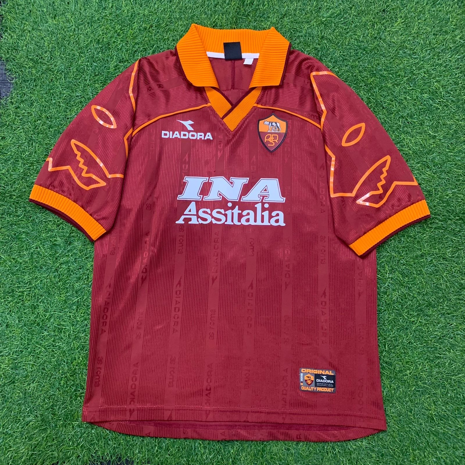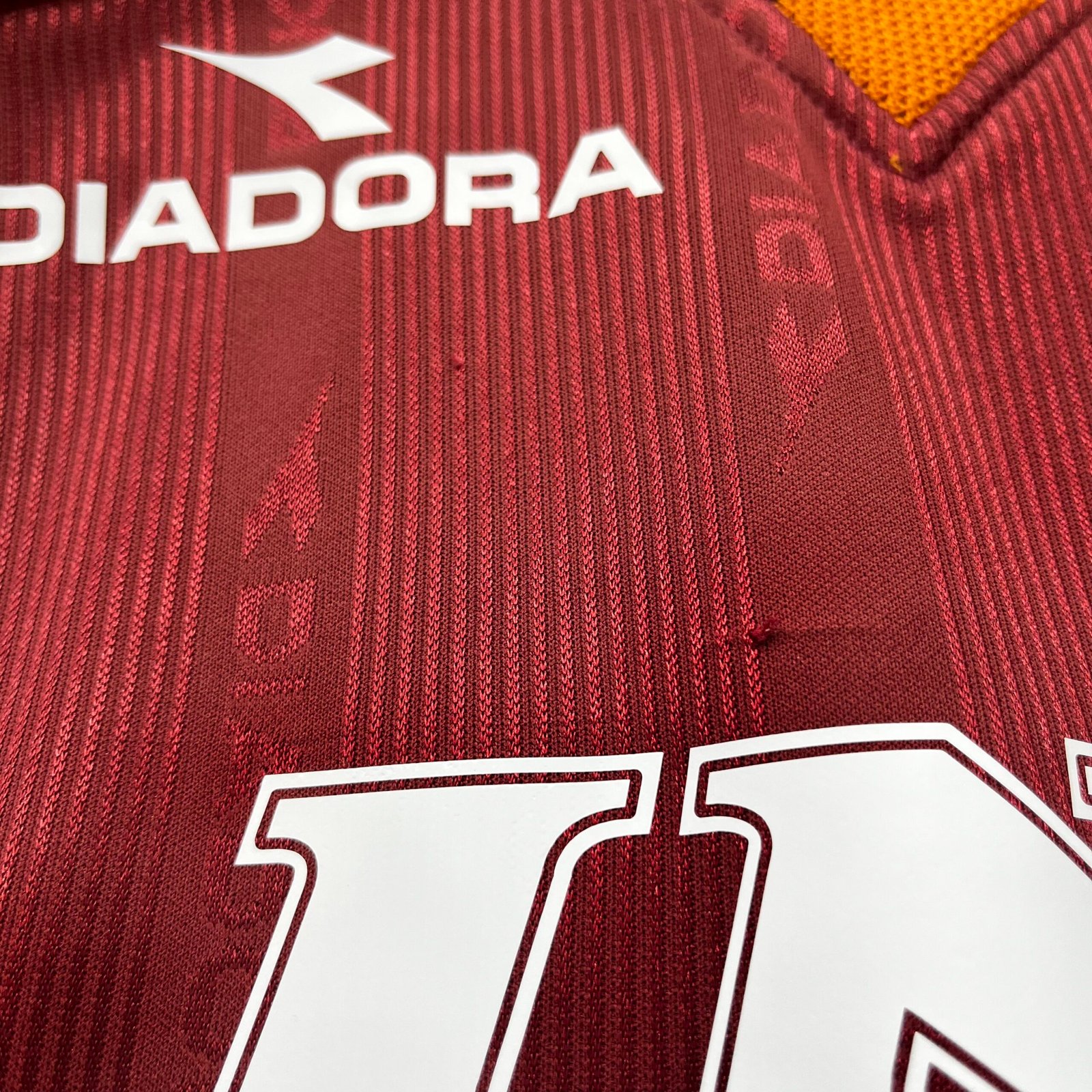 Condition detail : Bright colours, smooth material feel, rubber logo. Remake AS Roma nameset and number player size.some bobbles.