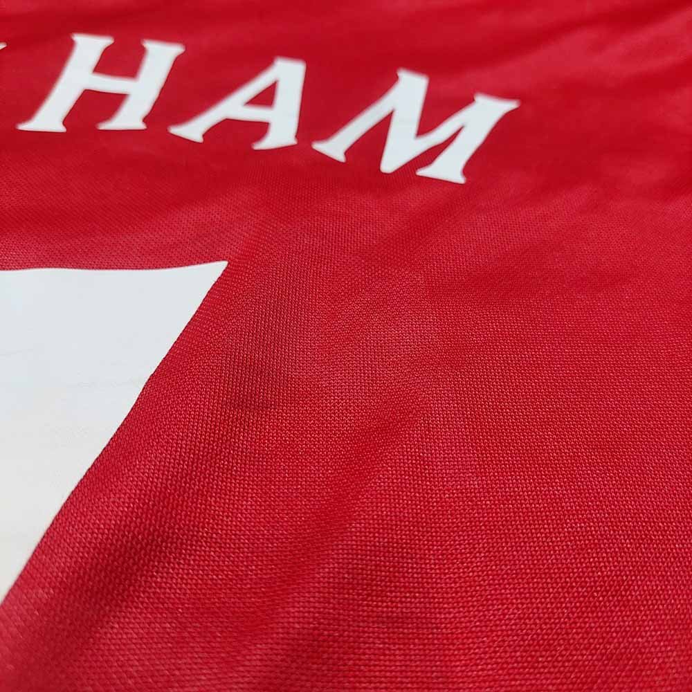 Condition detail : Bright colours, smooth material feel. Remake England nameset, number and team logo player size. Bobbles. Peel off marks near back number
