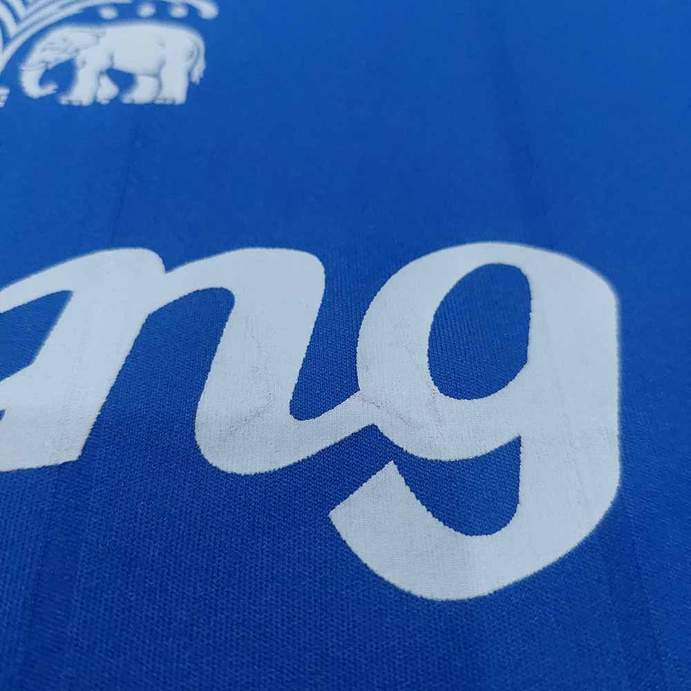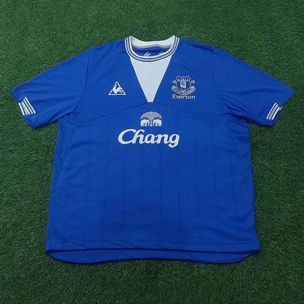 Condition detail : Bright colours, smooth material feel. Remake Everton nameset and number player size. Some stain but washable. Bobbles. Stain on sponsor.