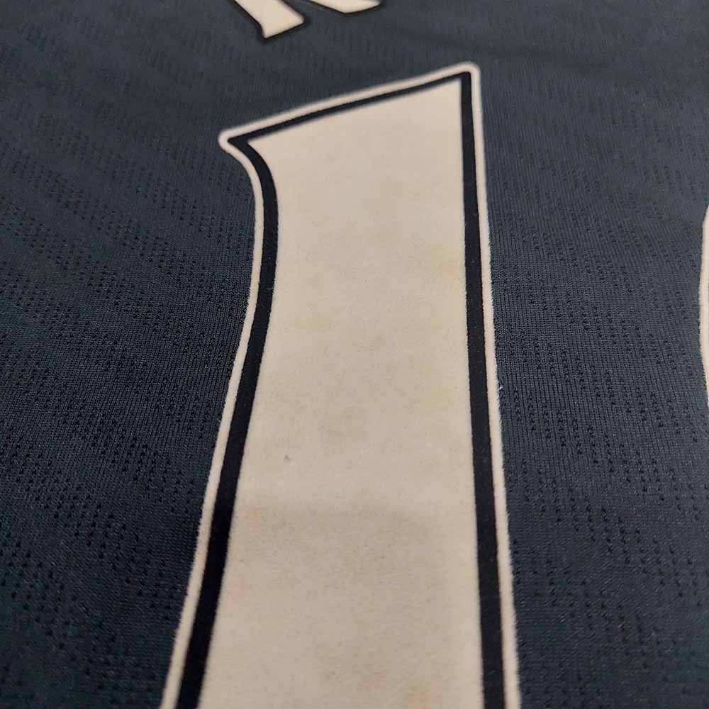 Condition detail : Bright colours, smooth material feel. Official Manchester United nameset and number player size. Minus on sponsor. Stain but washable. Yellowing on nameset and number.