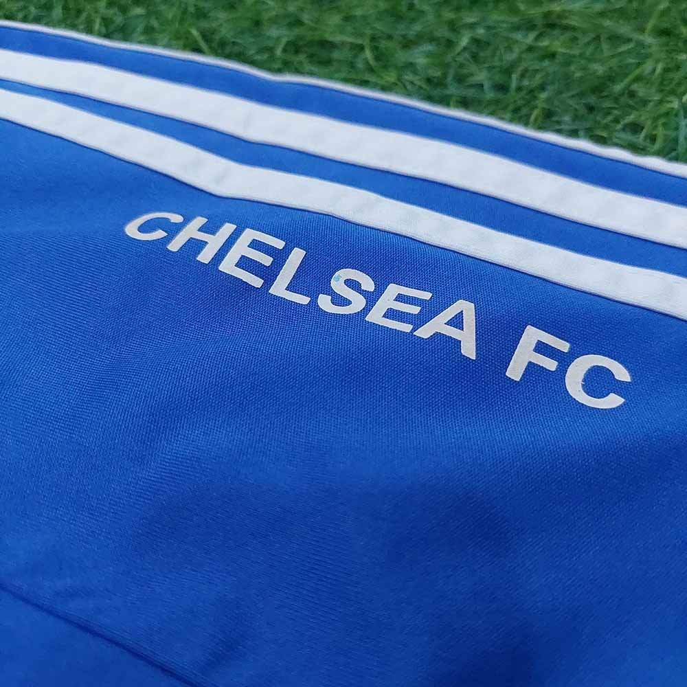 Condition detail : Bright colours, smooth material feel. Faded size label and Climacool logo. Crack Chelsea FC logo on arm.