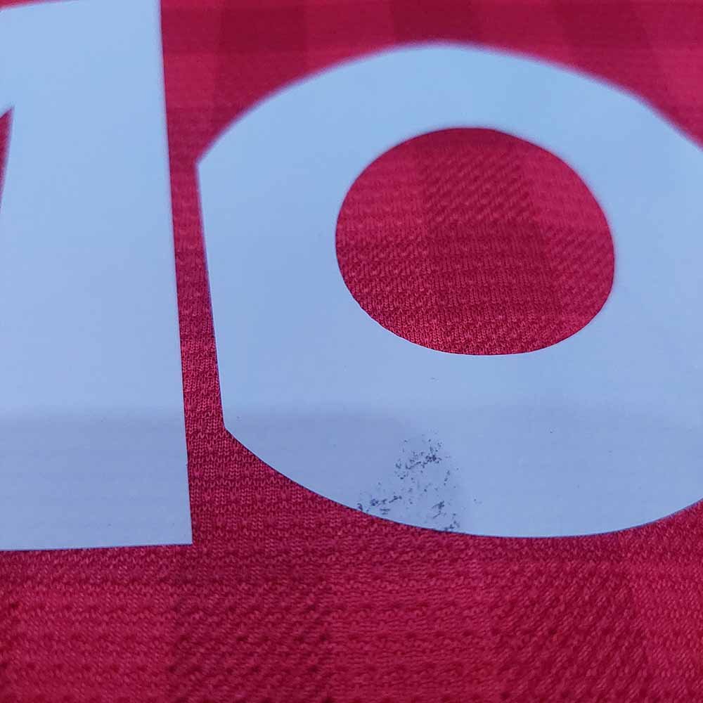 Condition detail : Bright colours, smooth material feel. Remake Manchester United nameset, number and sponsor player size. Bobbles. Stain but washable. Minus on sponsor.